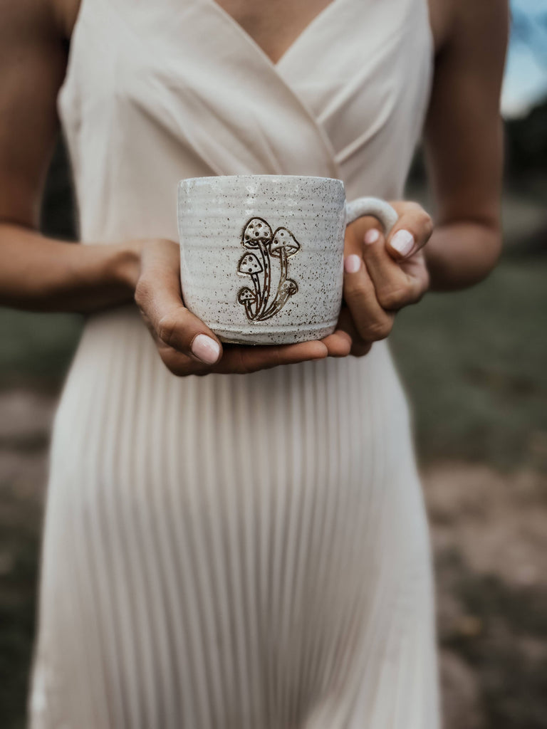 Ceramic Mug - Mushroom: Without handle / Two mushrooms